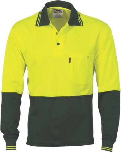 Cotton Back HiVis Two Tone Fluoro Polo - Long Sleeve