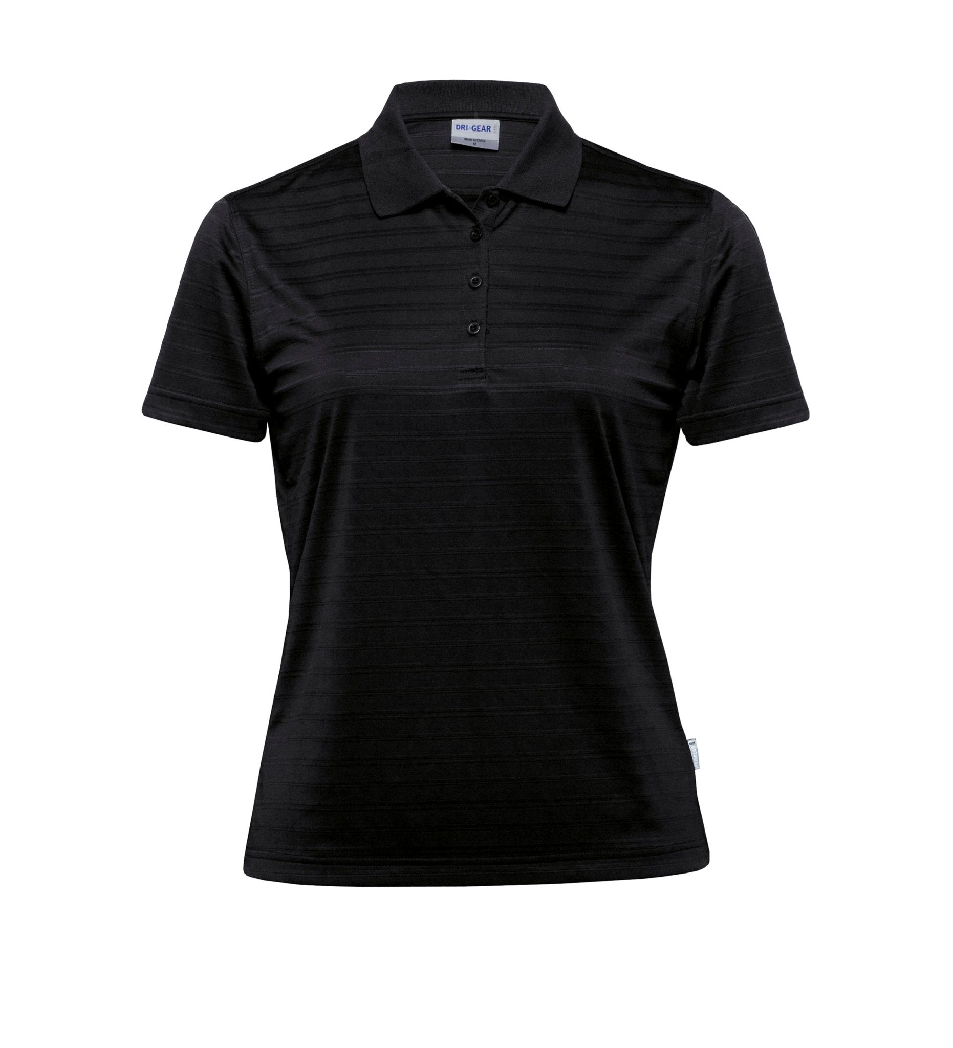 165gsm 100% polyester jacquard self stripe|Moisture wicking|Flat knit collar|Twin needle detailing|DRI GEAR buttons on plaquet|Side splits at hem|DRI GEAR side pip