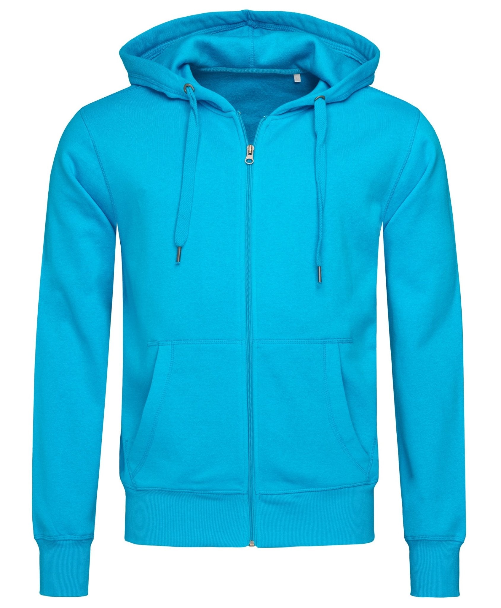 Fashionable hooded sweatjacket for men made of warm and soft cotton-polyester-blend with a modern and sporty design, kangaroo pocket, wide rib cuffs and wide draw cord. Brushed inside for extra comfort and warmth.