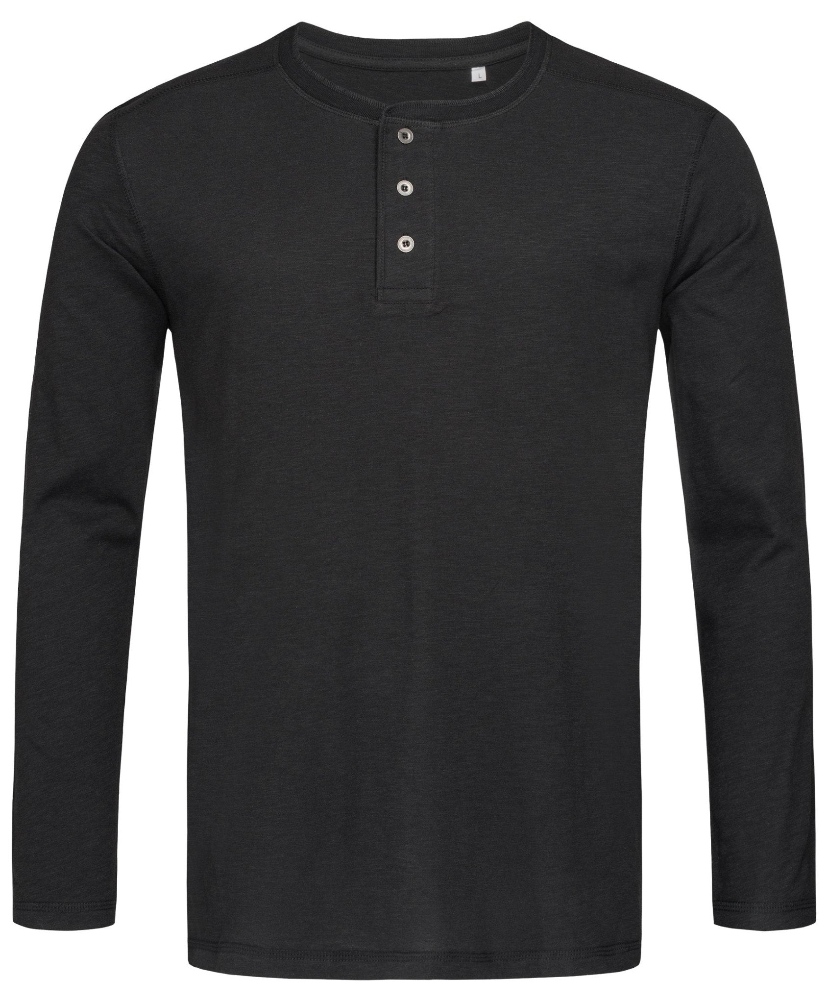 Fashionable Henley long sleeve T-shirt for men, made of soft slub yarn for a texturised look with a wide 3-button placket and decorative flatlock seams.