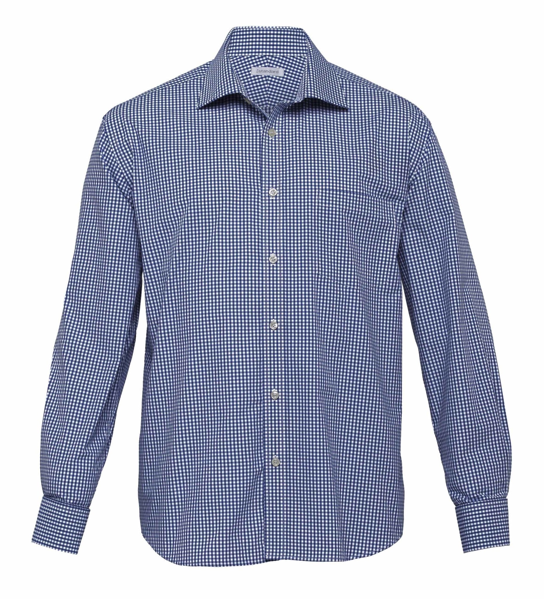65% polyester 35% cotton yarn dyed gingham check|Classic fit|Fashion collar|Single breast pocket|French cuffs
