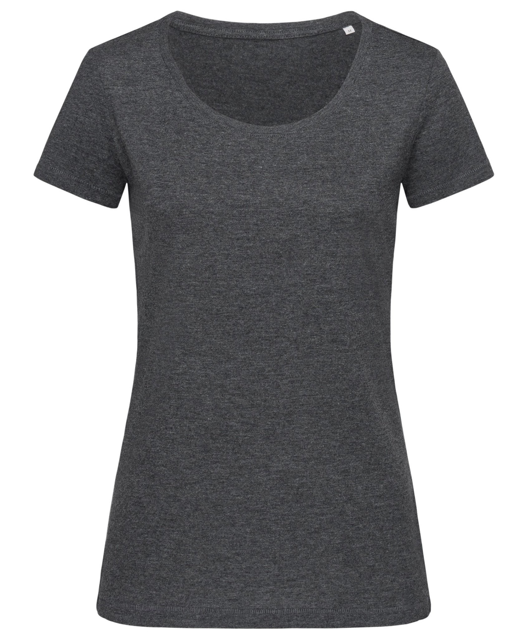 Fashionable T-shirt for women, made of soft cotton-polyester-melange with fashionable wide neck drop and decorative grain stitches on sleeve and bottom hem.